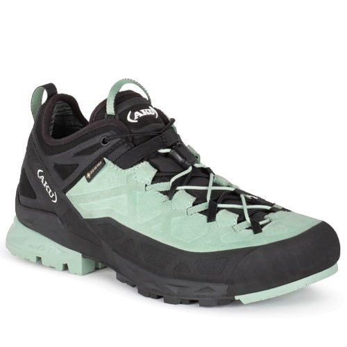 Aku Rock Womens DFS GTX Jade Black är lätta och vattentäta skor för vandring med Goretex i ovandelen. En stabil konstruktion i framfoten och med ett skyddsband som sveper in och skyddar mellansulan gör denna klättringssko idealisk för alla utflykter ute i naturen.