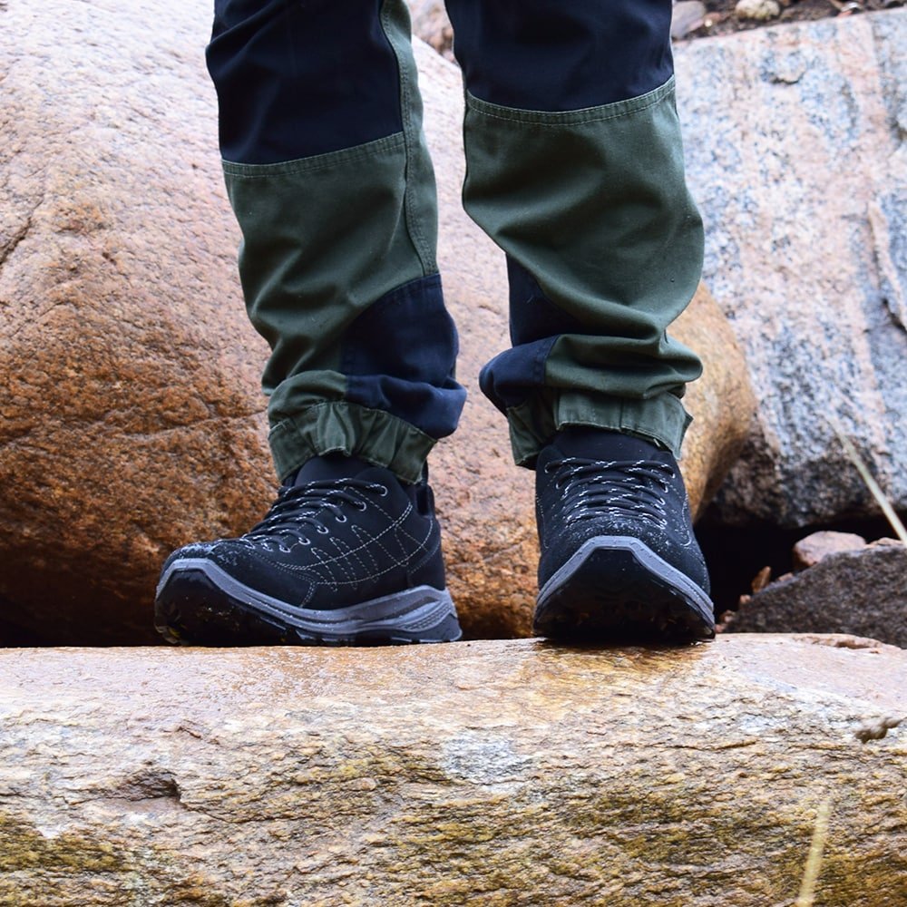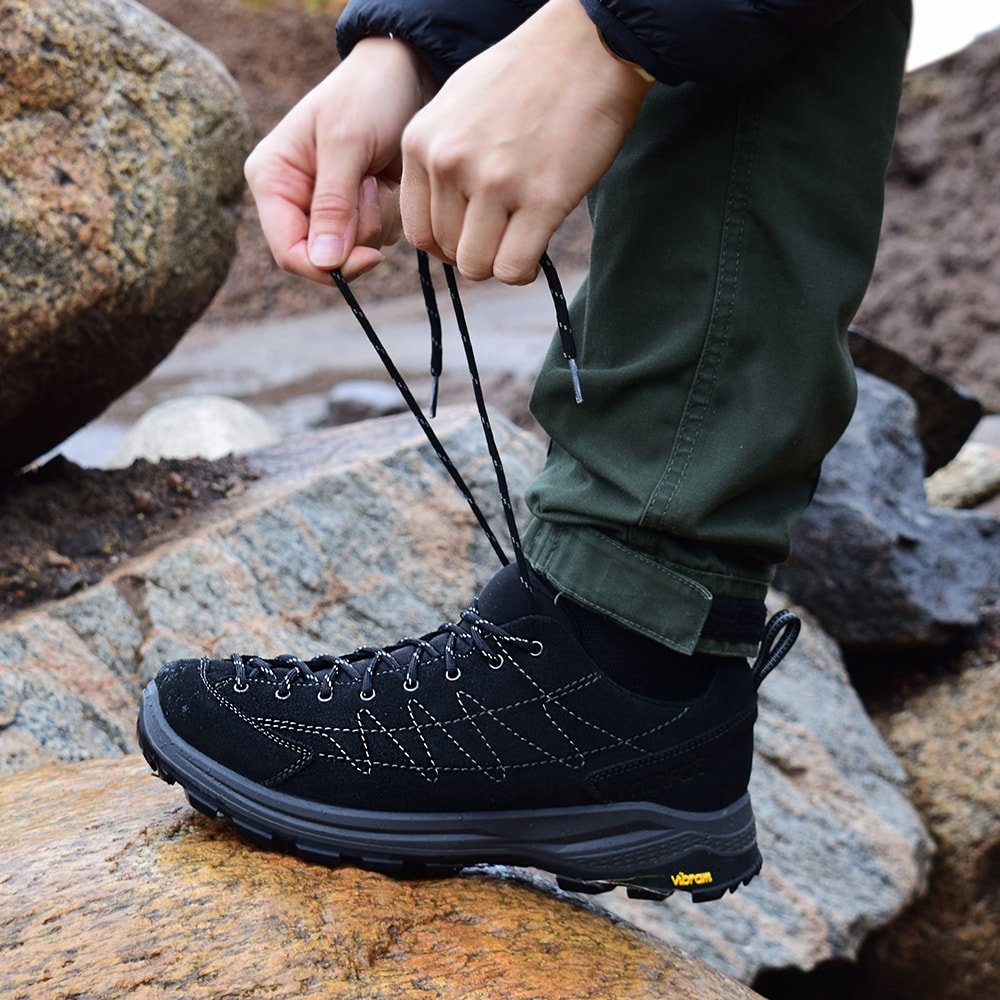 Snörningen går hela vägen fram till tårna vilket är stiltypiskt för en klassisk typ av vandringsskor. Detta gör även att man har större möjlighet att justera passformen hela vägen fram. Vaddering i plös och krage ger bekvämlighet och plösen är även bälgsydd vilket betyder att den sitter fast och inte släpper in vare sig skräp eller fukt i skorna.