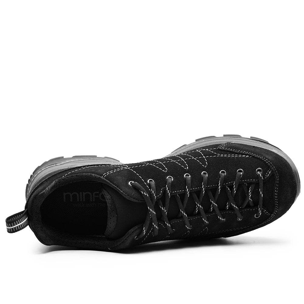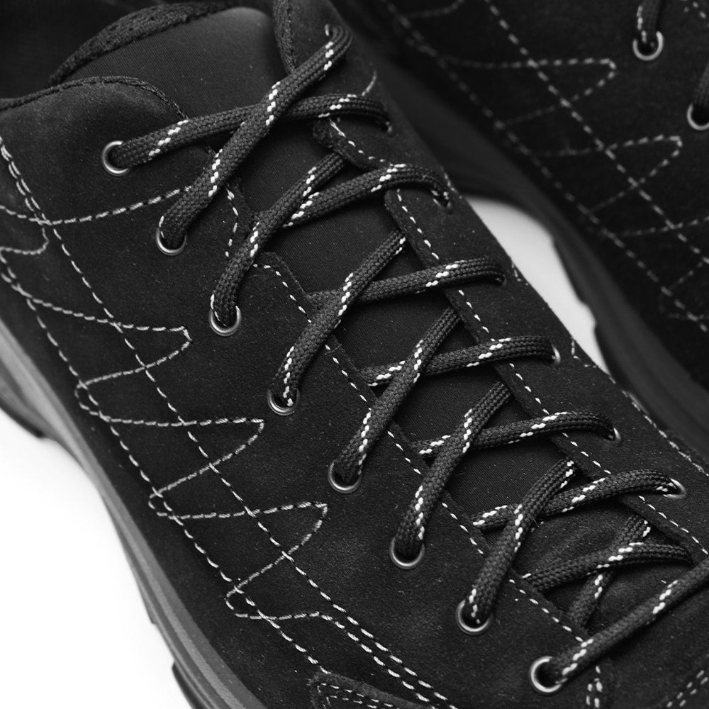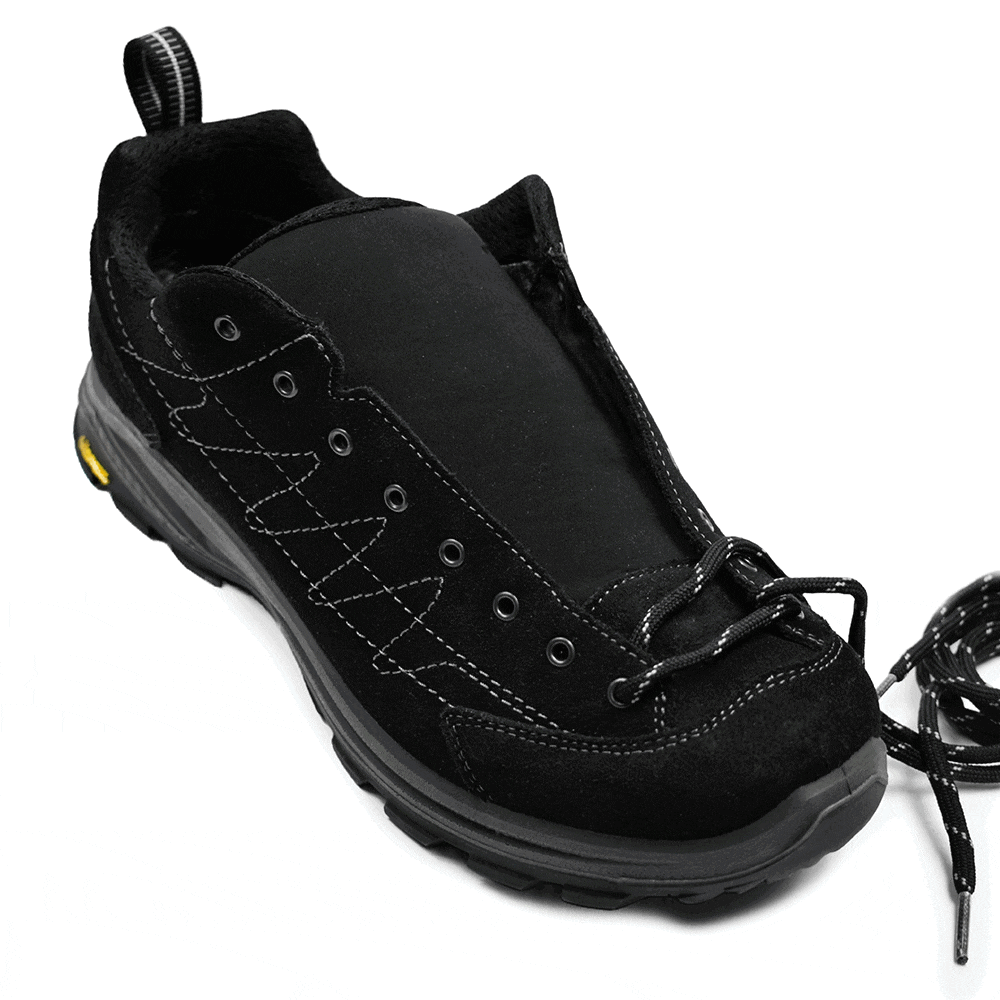 Svarta stilrena promenadskor för både dam och herr i snygg svart mocka med vattenavvisande membran.