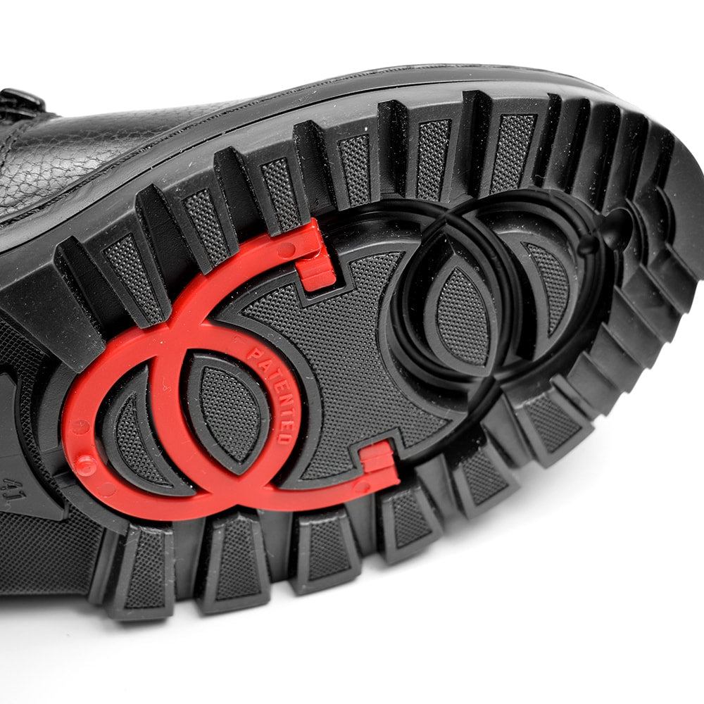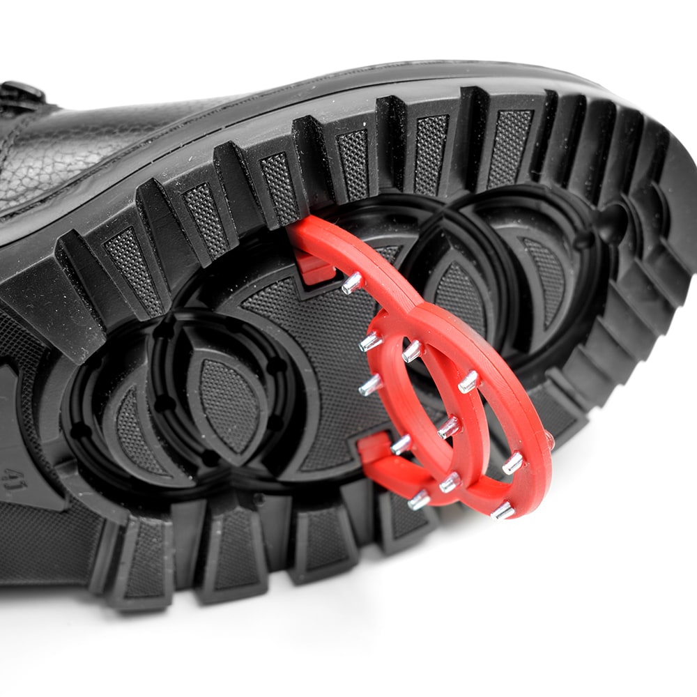 - Greppvänlig yttersula som är räfflad för ett bra och stabilt grepp när broddarna inte används.
