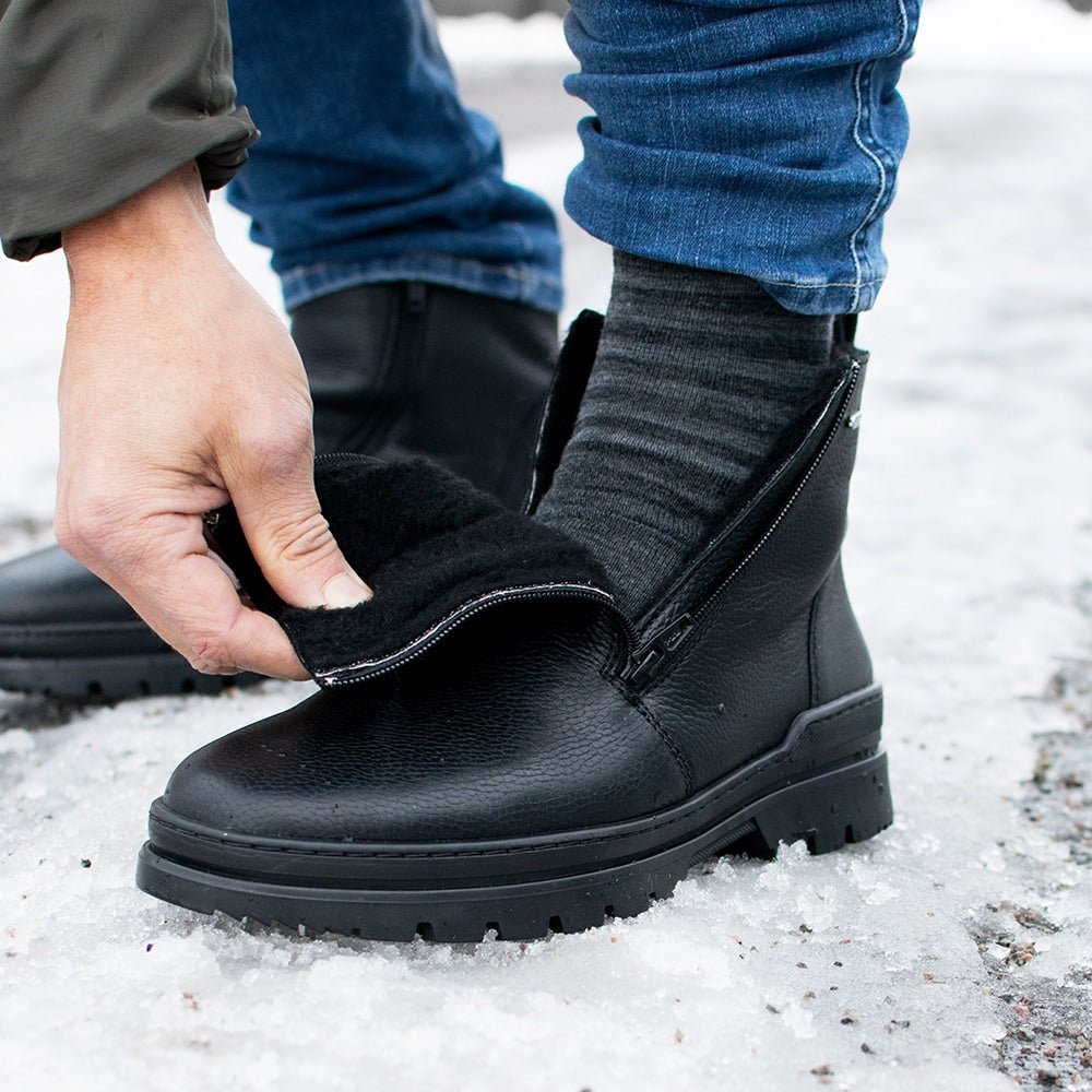 - Varmfodrade med ull som ger dina fötter värme när de är kalla, men behåller dem svala när det är varmt.