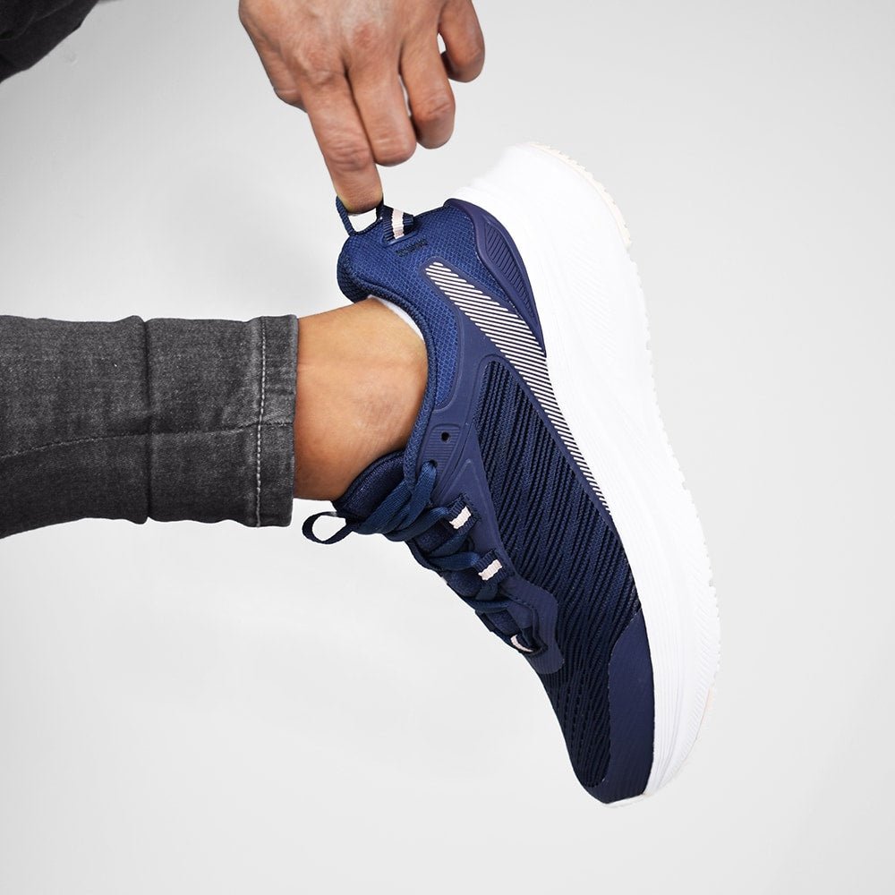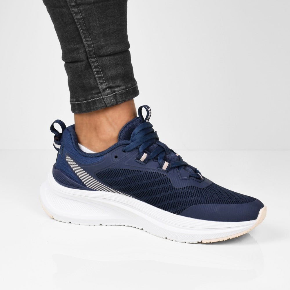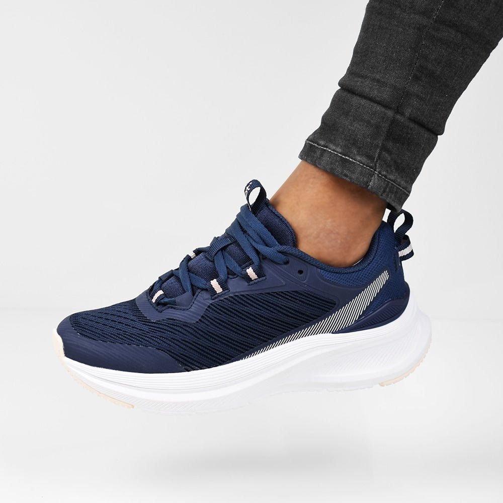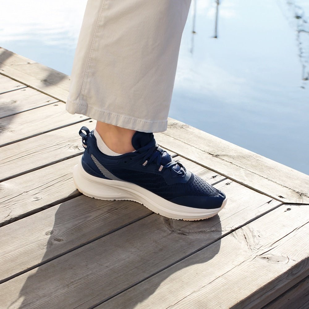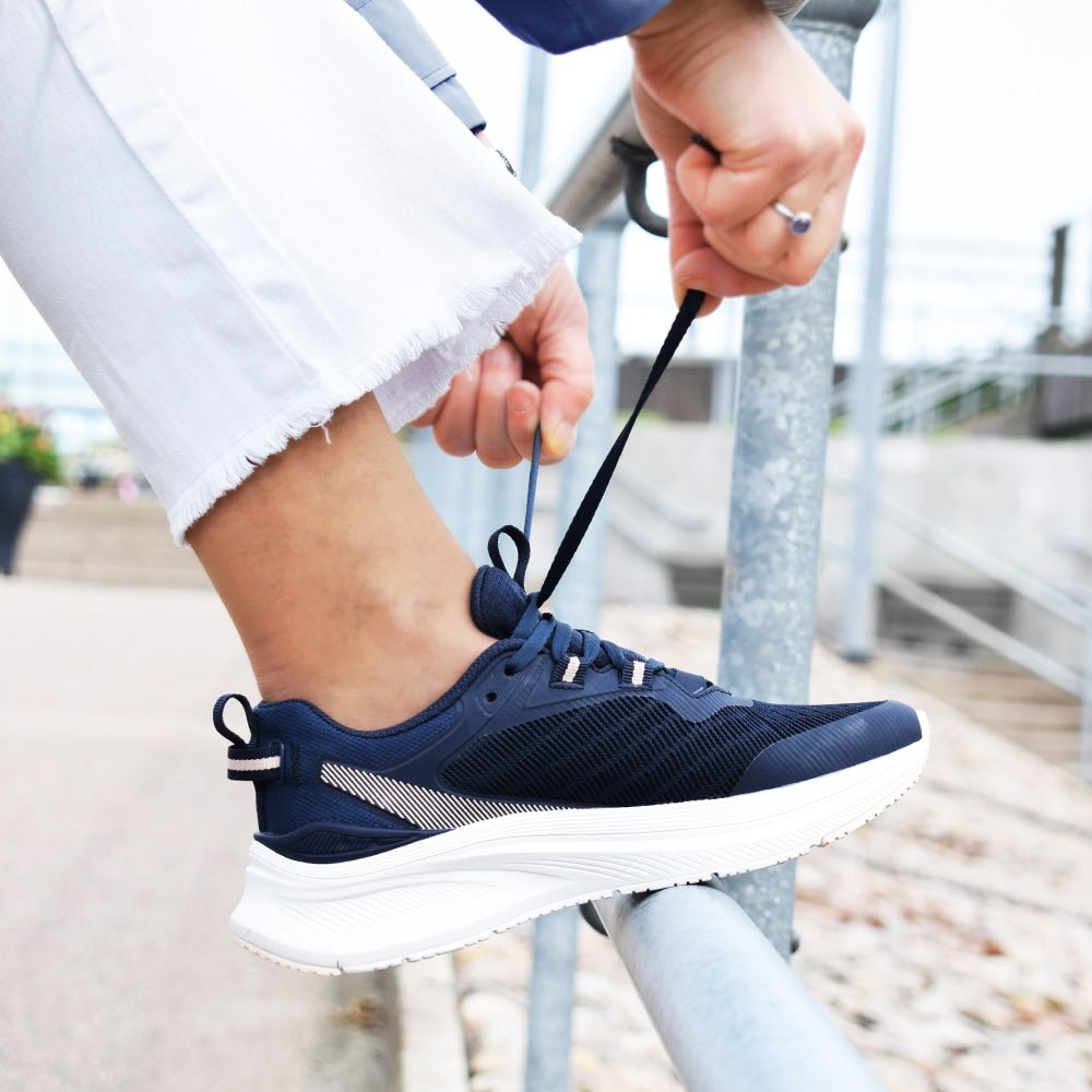 Skorna har klassisk snörning, hällor på plös och häl för att de ska vara lättare att ta på och reflex-detaljer så att du syns bättre i mörker. Eftersom det är en sportsko kan du utan problem gå upp en storlek då den mjuka meshen och snörningen gör ovandelen av skon mycket flexibel. Du bibehåller passformen men får lite mer plats i skorna, skönt för fötterna som kanske svullnar lite efter en lång promenad eller en dag på jobbet.
