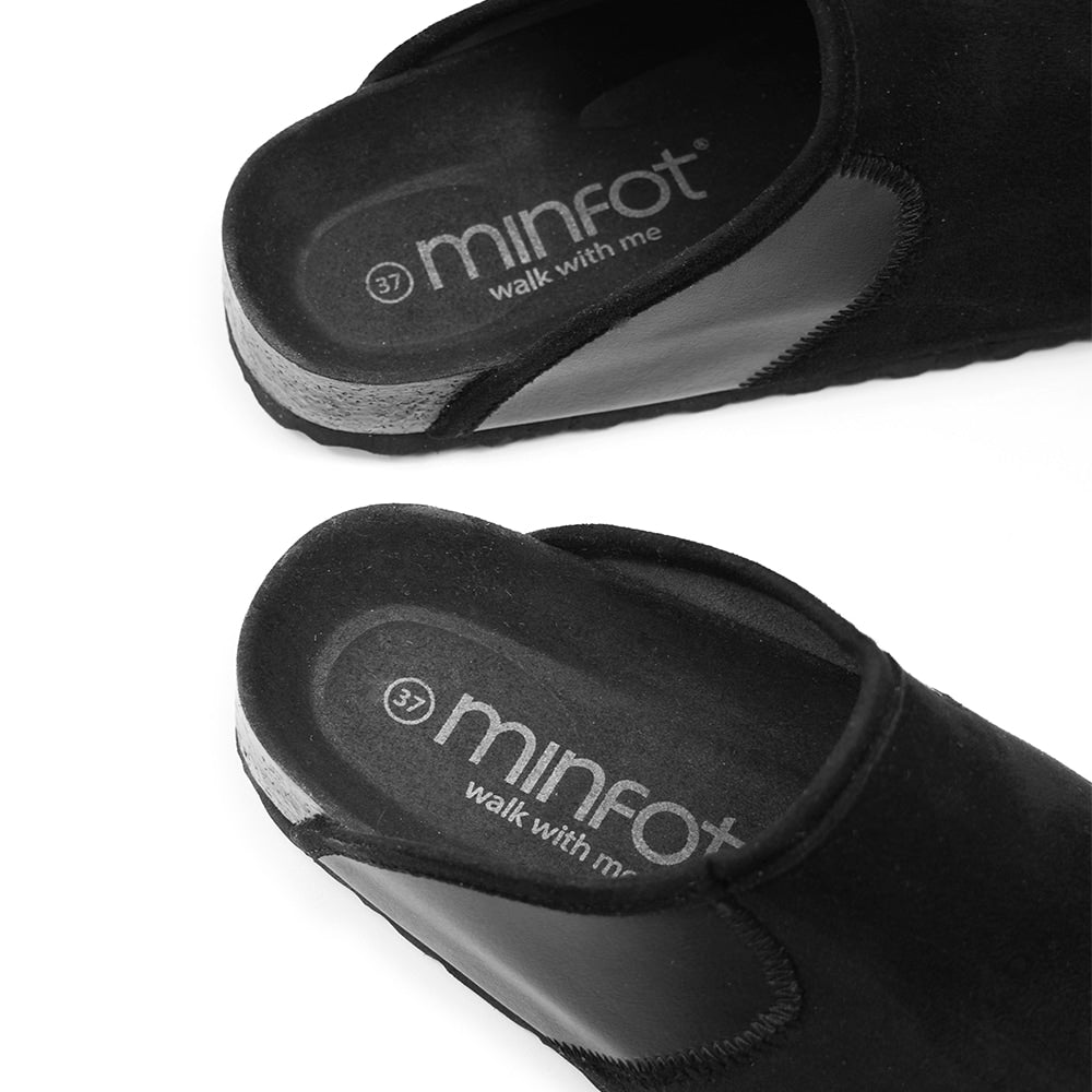Mjuka tofflor från Minfot med överdel av stretch, tofflorna passar därför utmärkt för dig som har problem med hallux valgus eller har bred fot framtill.